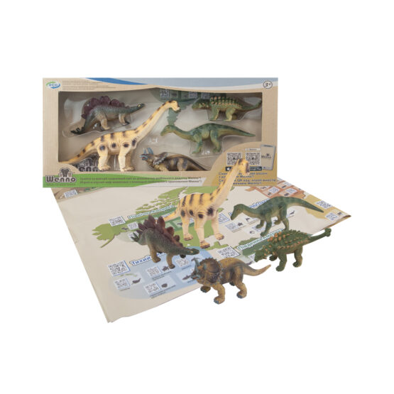 • 5 фігурок тварин: трицератопс, ігуанадонт, брахіозавр, стегозавр, анкілозавр.