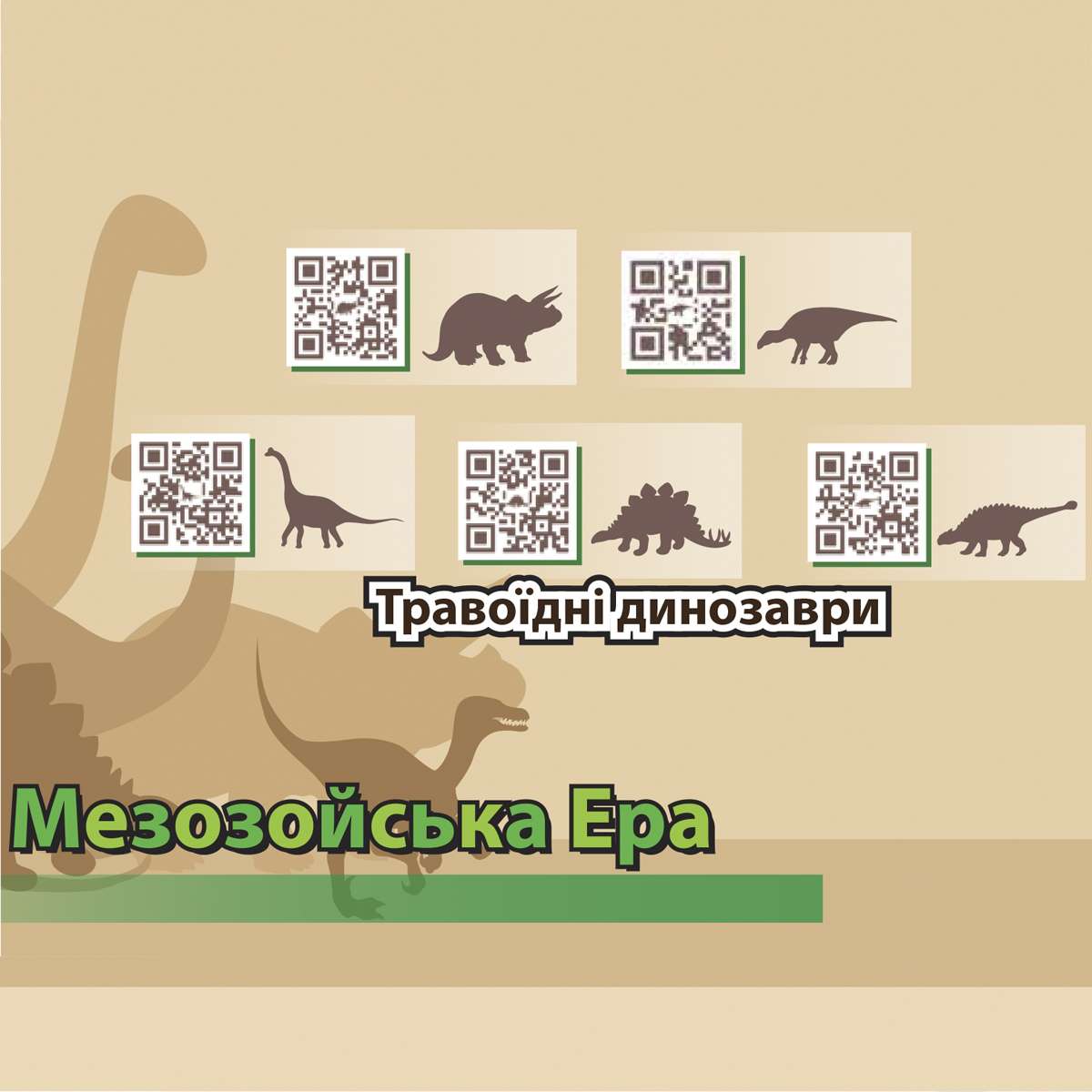 • Дитина познайомиться з травоїдними динозаврами як наочно (граючись з фігурками тварин), так і використовуючи сучасні технології (додаток на смартфоніпланшеті, карта з qr-кодом для кожної тварини).