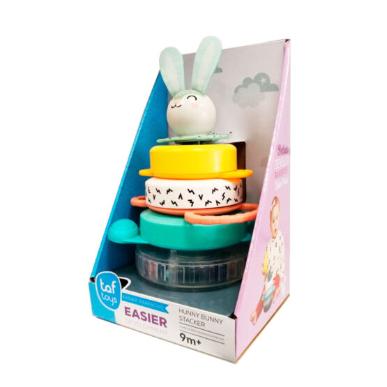 • Яскрава пірамідка з 4 барвистими кільцями і доброзичливим кроликом на верхівці;