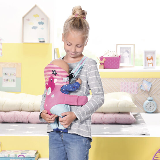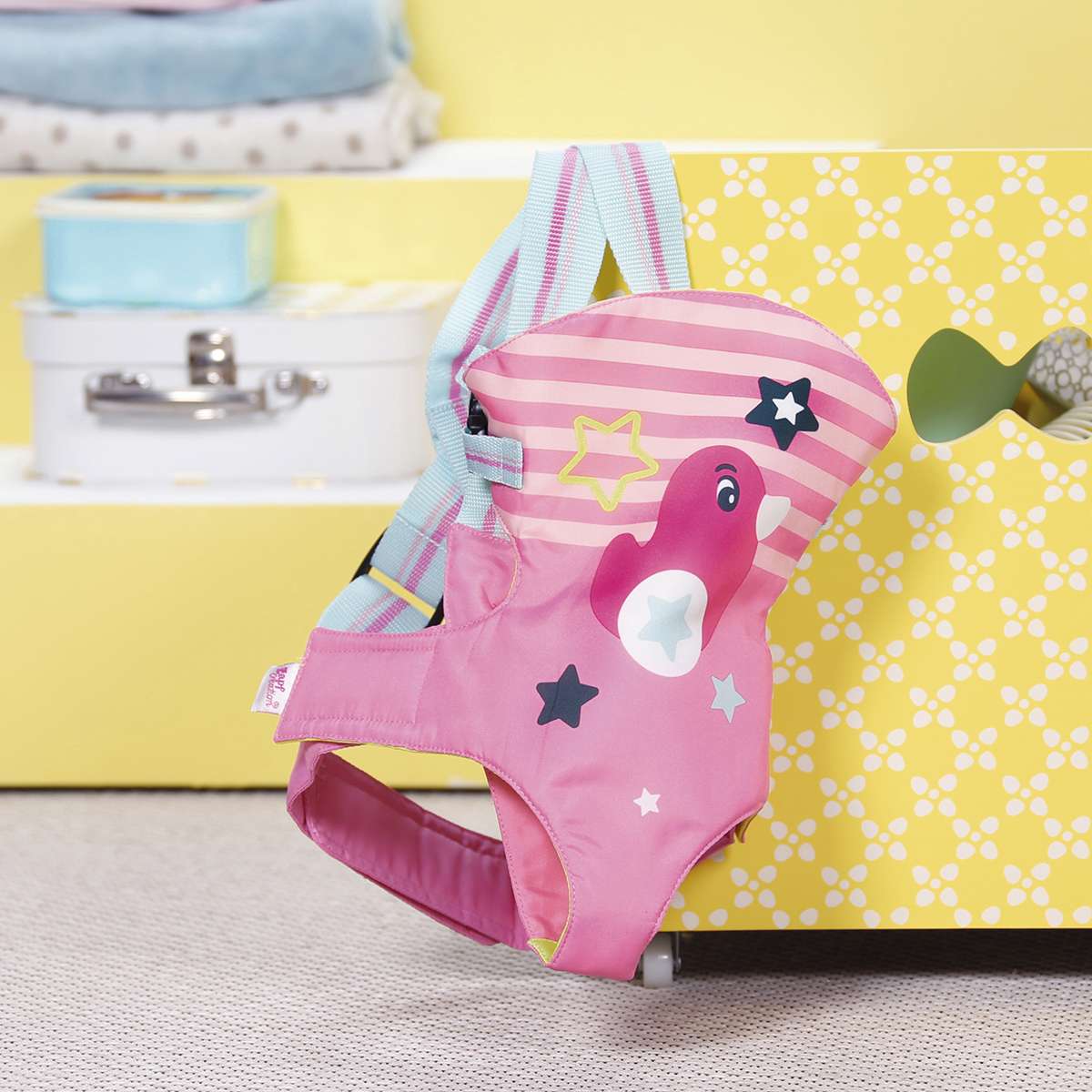 Щоб гуляти з вашою BABY born було не тільки весело, але і зручно – цей рюкзак-кенгуру буде просто ідеальним варіантом! У рюкзака зручні лямки, які легко фіксуються. А також яскравий і кумедний дизайн! Посадіть свою улюбленицю в рюкзак – і вперед на прогулянку! Підходить для лялечок висотою до 43 см. У наборі: Гра з таким аксесуаром буде розвивати в дитині уяву, вміння грати і турботу.