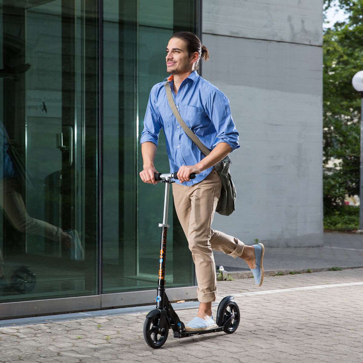 Завдяки своїм великим колесам діаметром 200 мм самокат Мікро ідеально підходить для прогулянок по місту та за його межами.