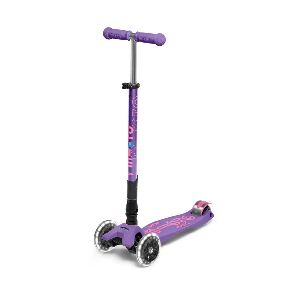 Самокат MICRO серії “Maxi Deluxe Foldable LED” – ФІОЛЕТОВИЙ (складаний, до 50 kg, триколісний, світло)