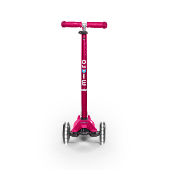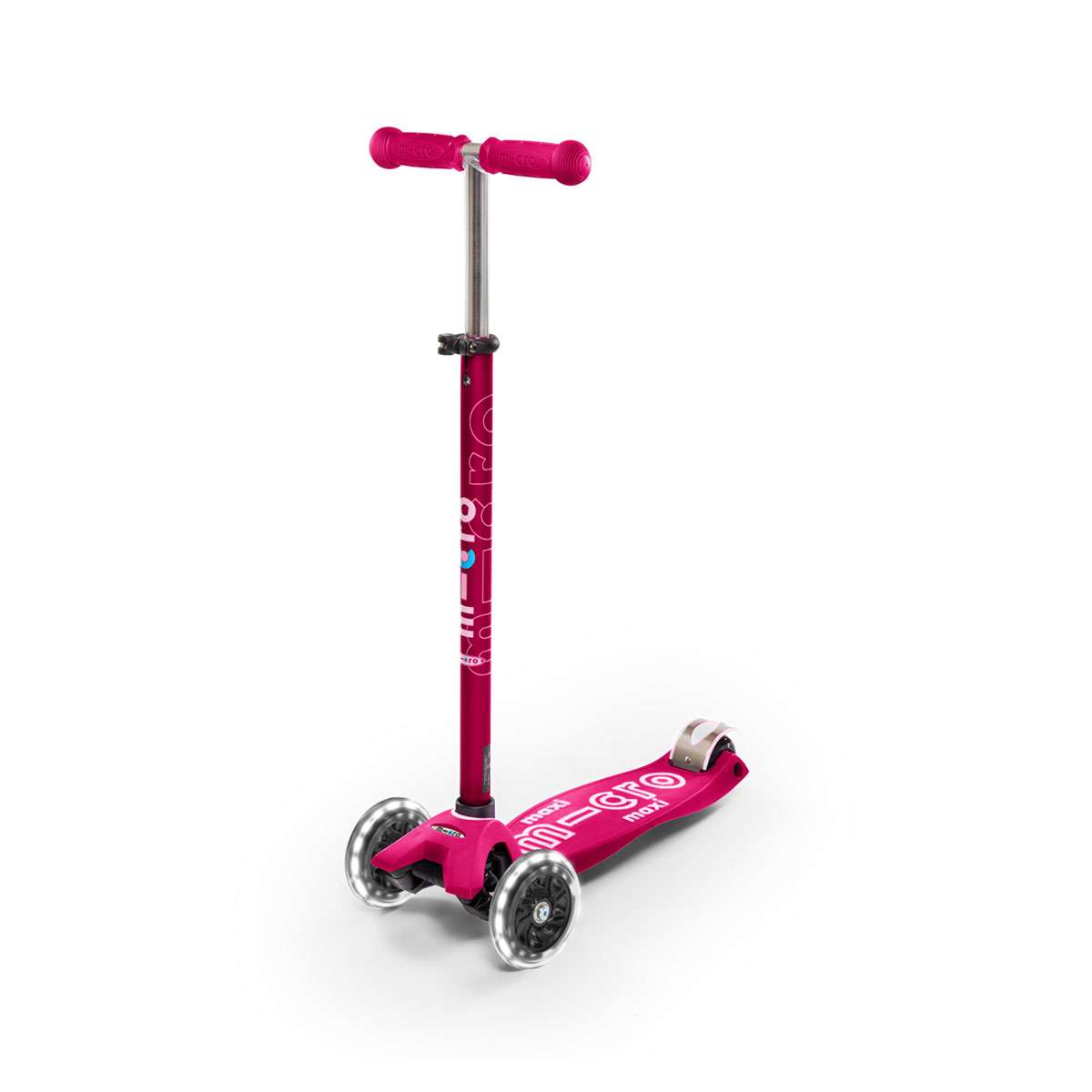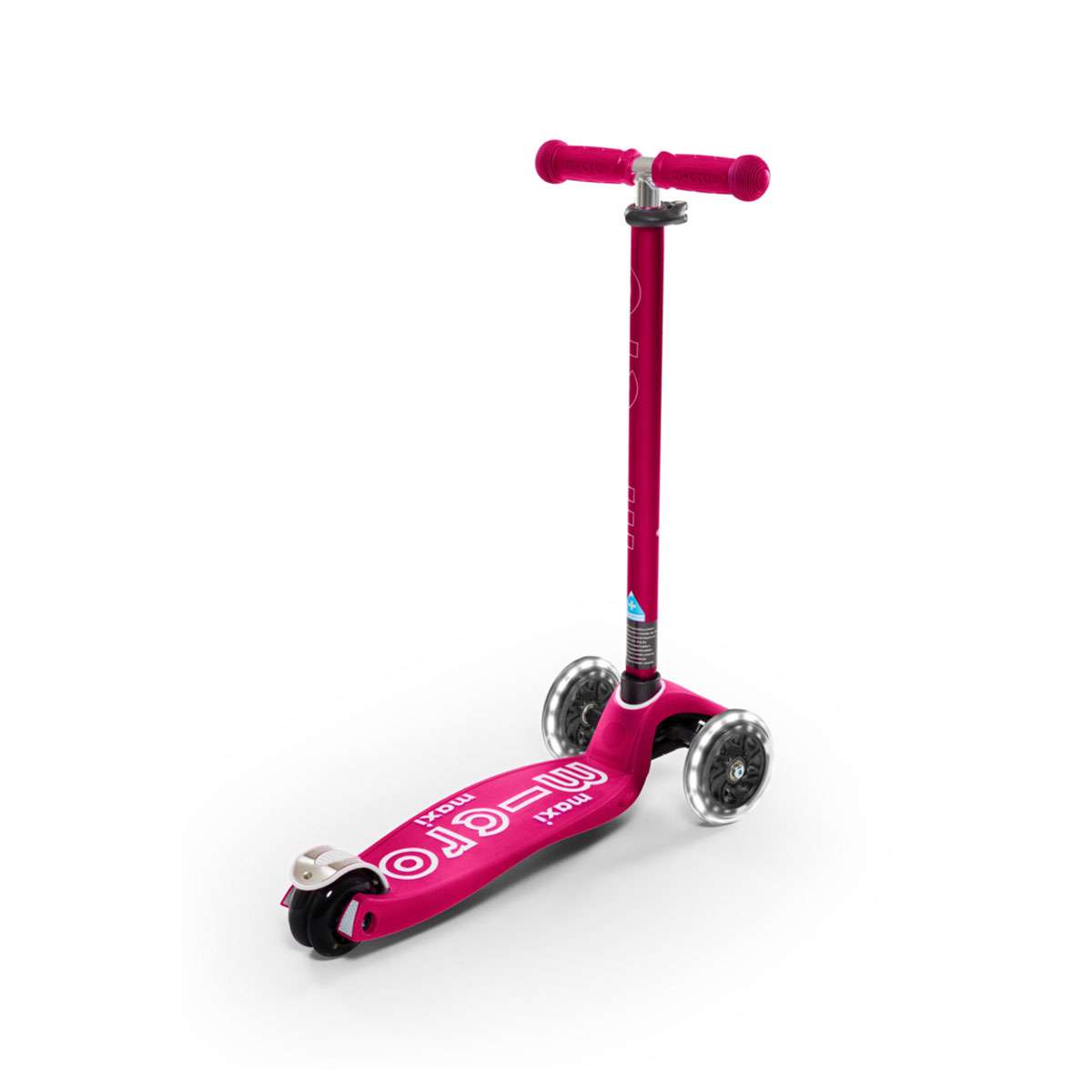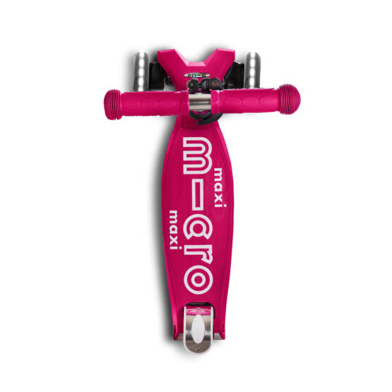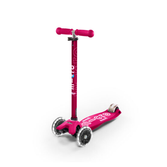Дитячий самокат MICRO серії “Maxi Deluxe LED” – РОЖЕВИЙ досконалий та міцний самокат для Ваших малюків. Він оснащений складним механізмом, для зручності зберігання та транспортування, а також колесами, що світяться.