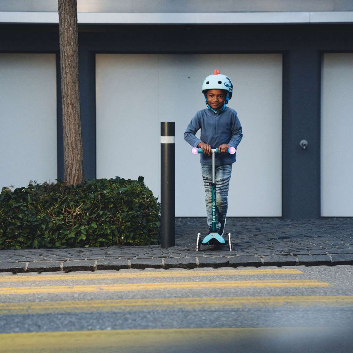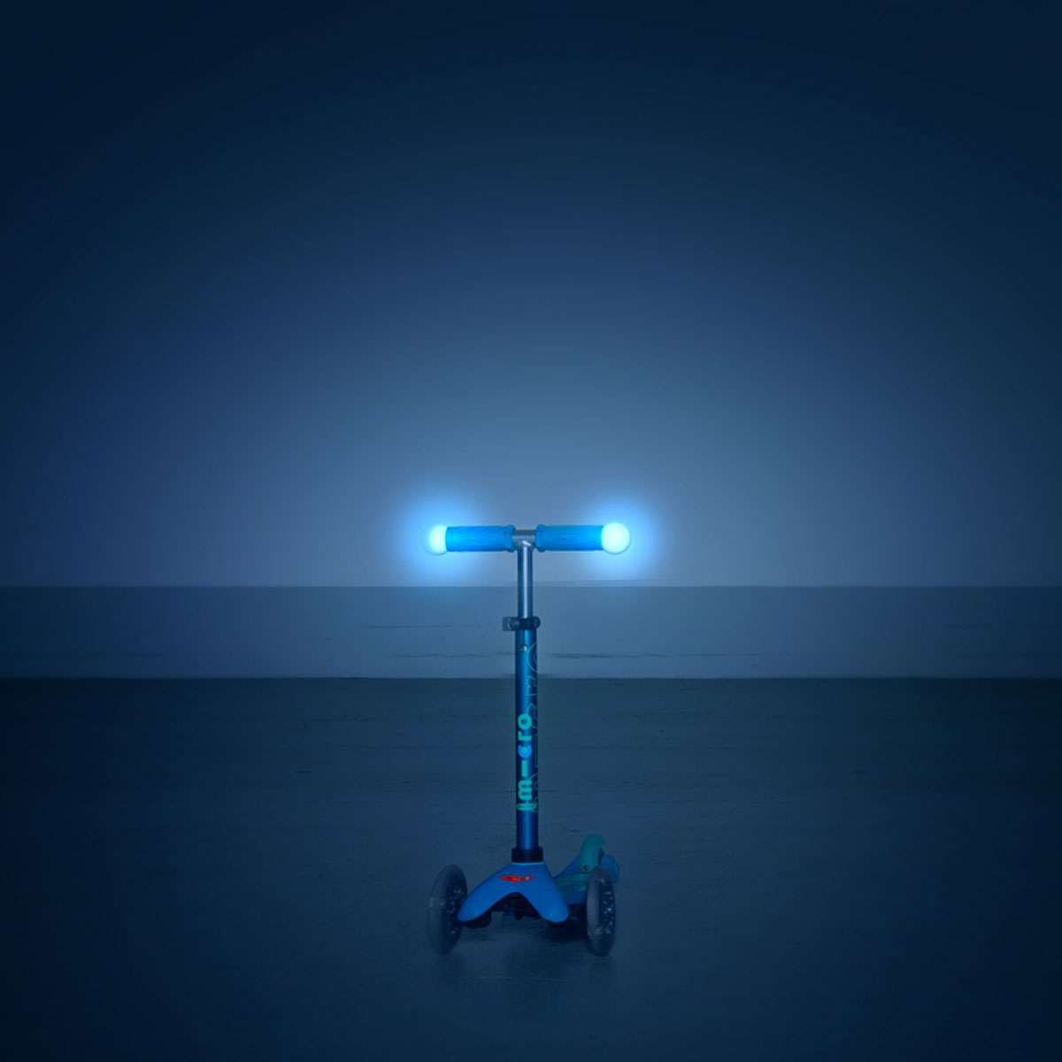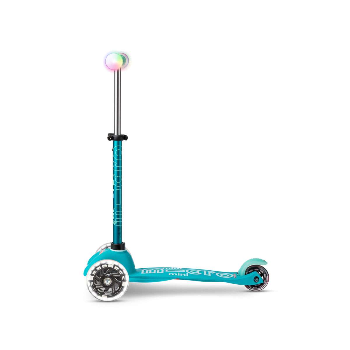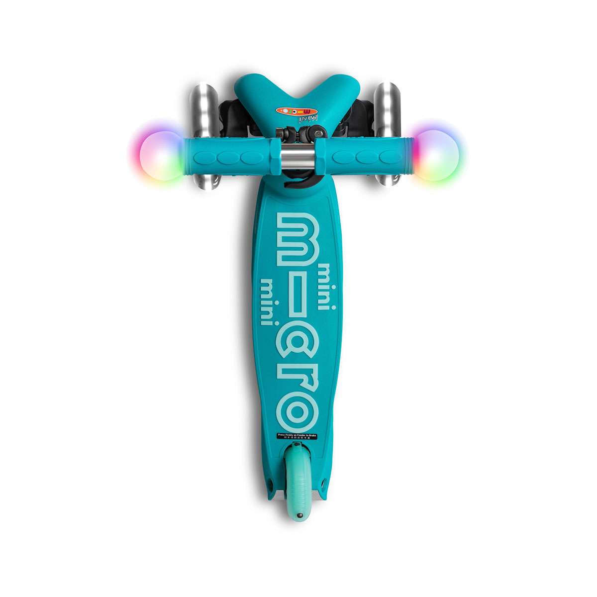 Дитячий самокат MICRO серії “Mini Deluxe Magic” – АКВА досконалий та міцний самокат для Ваших малюків. Крім того, це найяскравіший самокат серії Mini – у нього світяться колеса та ручки!