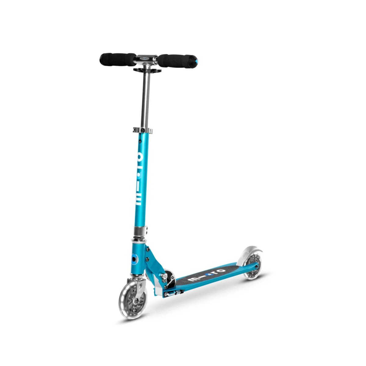 Дитячий самокат MICRO серії “Sprite LED” – БЛАКИТНИЙ ОКЕАН досконалий та міцний двоколісний самокат. Він оснащений колесами, що світяться та складною рамою.