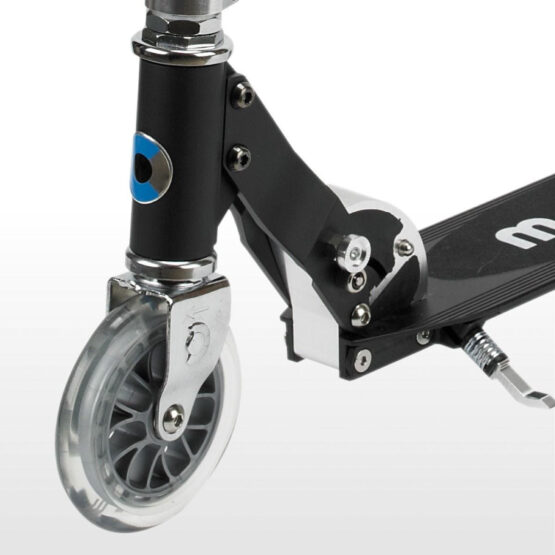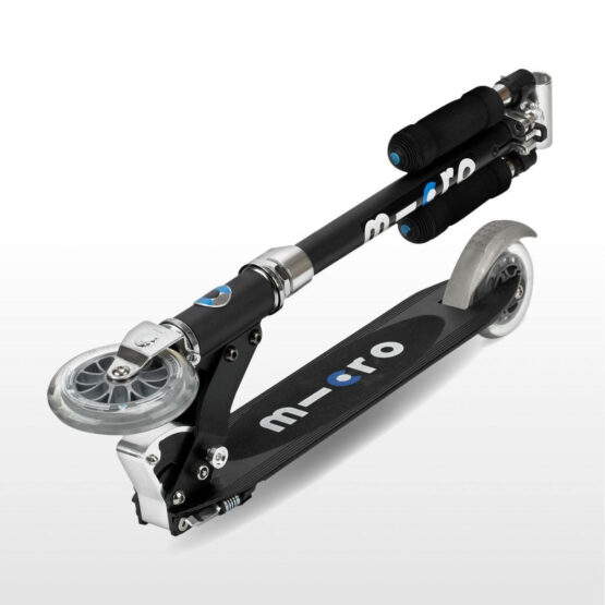 Дитячий самокат MICRO серії “Sprite LED” – ЧОРНИЙ досконалий та міцний двоколісний самокат. Він оснащений колесами, що світяться та складною рамою.