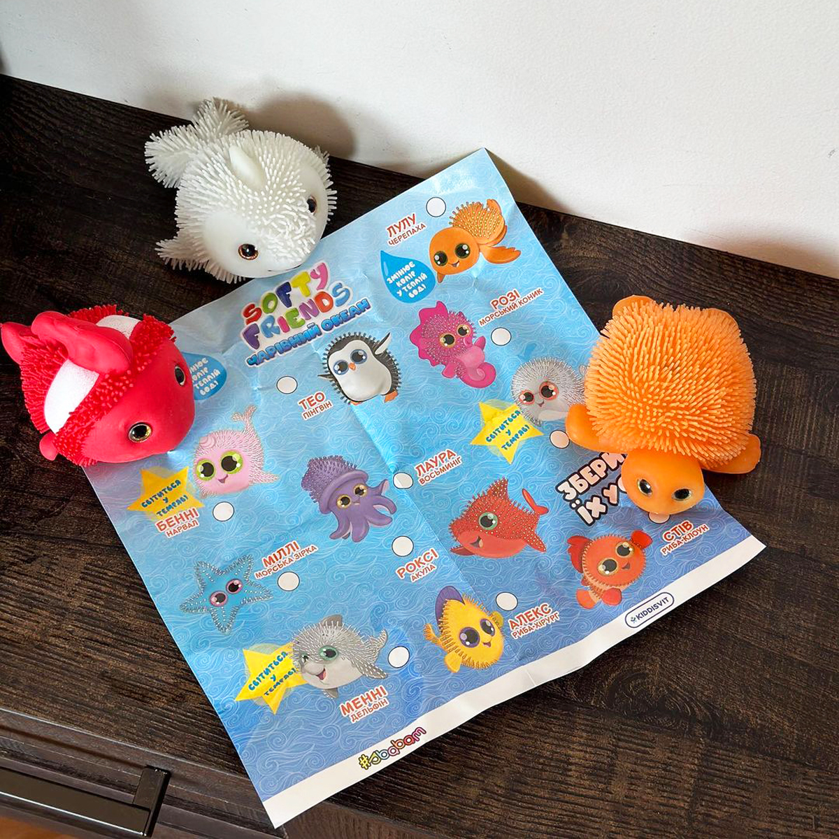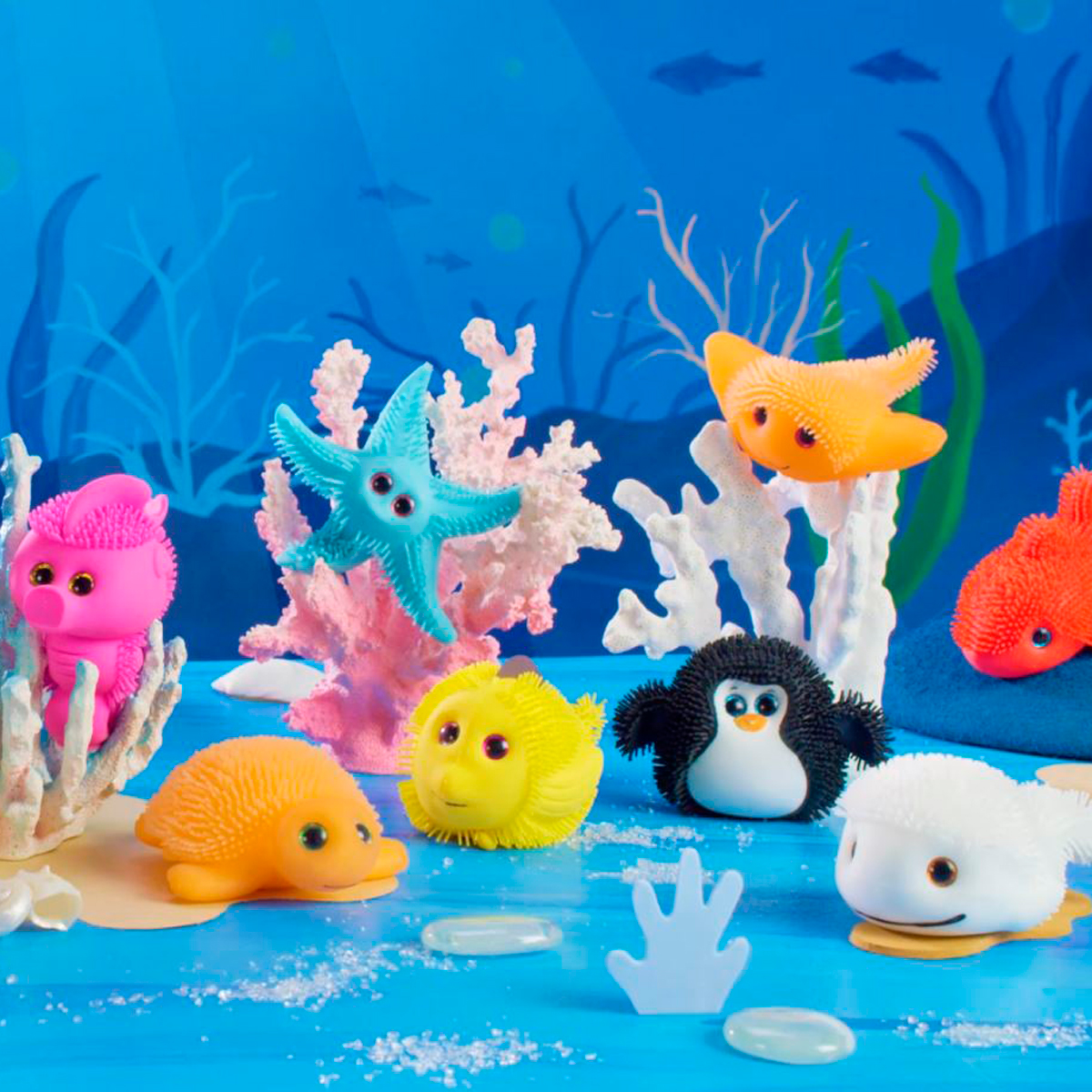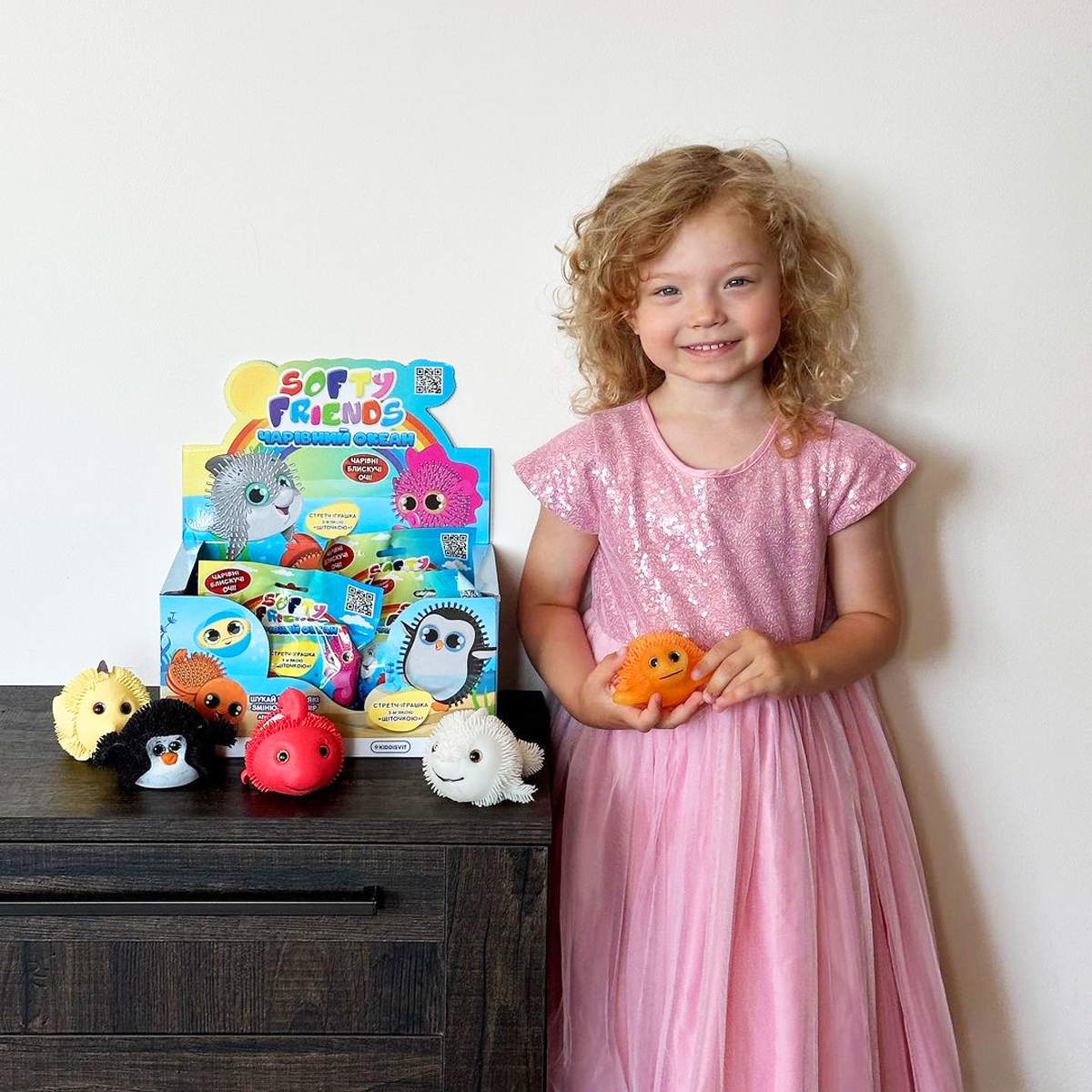 - Іграшки-тварини виготовлені з еластичного матеріалу та чудово тягнуться! Поверхня тварин зроблена в вигляді резинової «щіточки». Вона дуже приємна на дотик! Така іграшка допоможе малюкам розвивати сенсорику та дрібну моторику, а дорослим – знімати стрес!