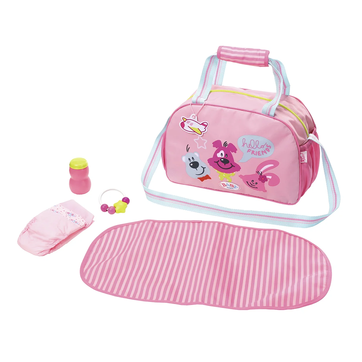 Коли ви з малятком BABY born збираєтеся на прогулянку, стільки всього треба взяти з собою! Пеленальний килимок, підгузок, баночку, брязкальце.