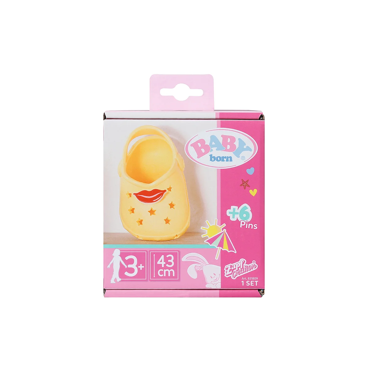 Жовті сандалі з комплектом значків подарують ще більше варіантів для створення образу Вашої BABY born! Значки на сандаліях можна комбінувати та цим зробити взуття підходящим для ще більшої кількості вбрань!